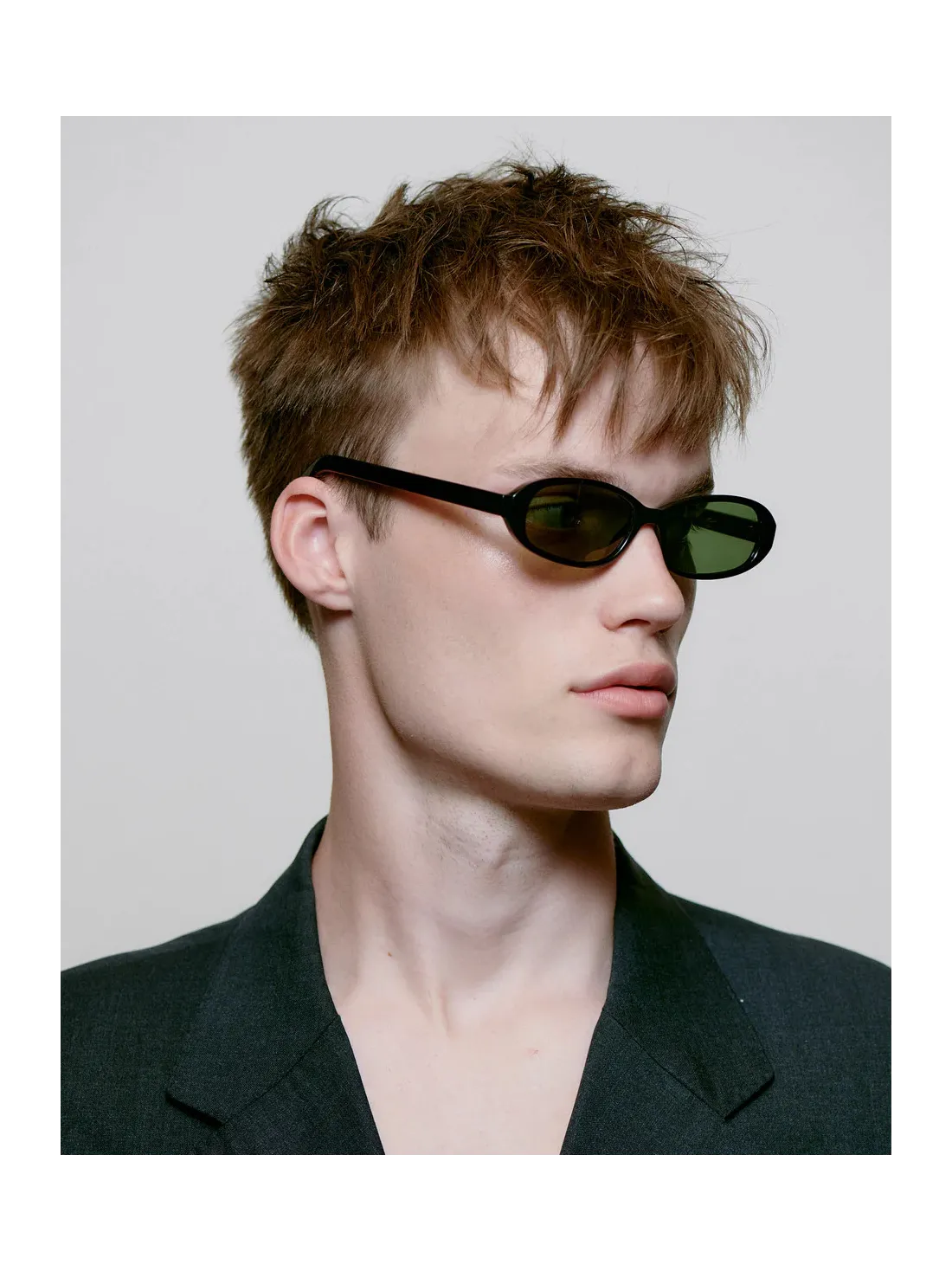 Macy je extra úzky unisex model inšpirovaný 90. rokmi. Má jemne vytočený tvar, oválne úzke sklá a mäkko zaoblený rám, ktorý dodáva uvoľnený a štýlový vzhľad.